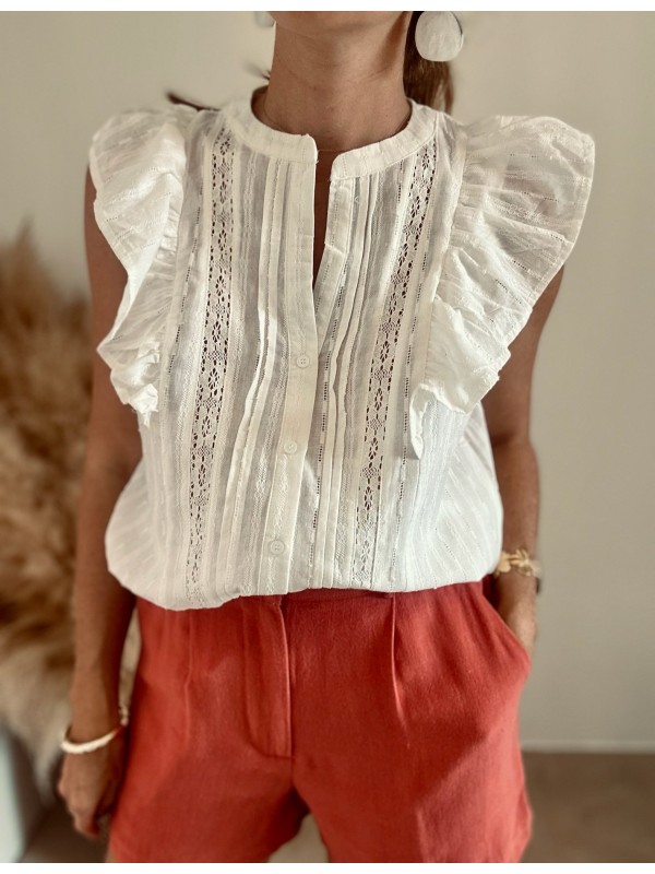 Sans manche avec des petits volants